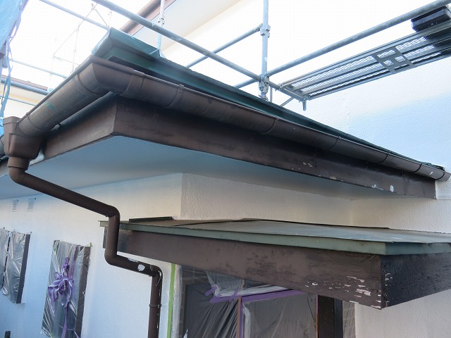 我孫子市 K 様邸、今回足場を架けて全面塗装工事をします。ついでに雨樋交換と破風板巻きをして下さい。とのご依頼。直ぐに無料現調にうかがいました。