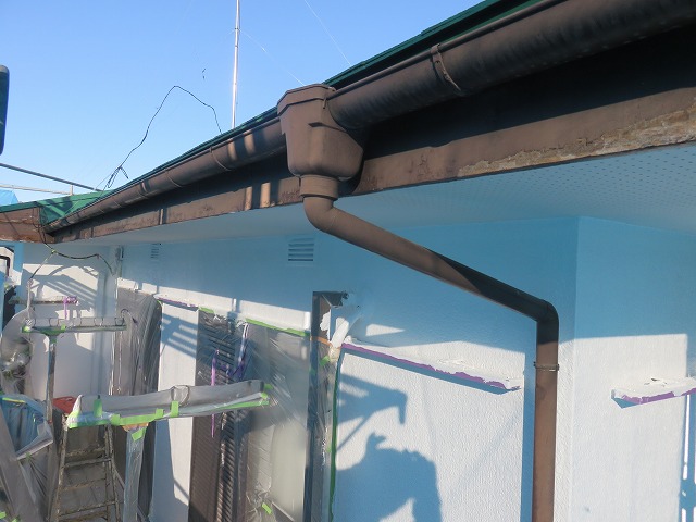 我孫子市 K 様邸、今回足場を架けて全面塗装工事をします。ついでに雨樋交換と破風板巻きをして下さい。とのご依頼。直ぐに無料現調にうかがいました。