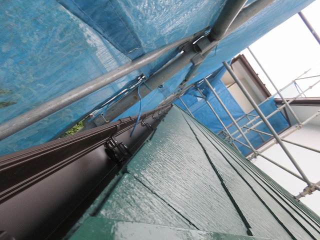 我孫子市 K 様邸、今回足場を架けて全面塗装工事をします。ついでに雨樋交換と破風板巻きをして下さい。とのご依頼。直ぐに無料現調にうかがいました。