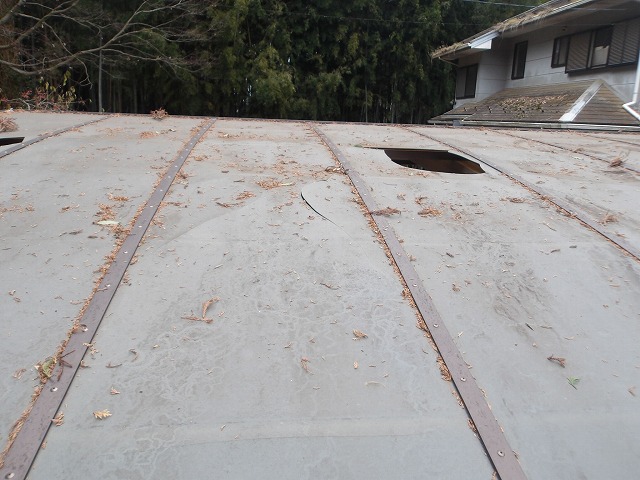牛久市、K様。カーポートの屋根が経年劣化でボロボロになりました。新しい屋根材と交換して下さい。とのご依頼、直ぐに伺いました。