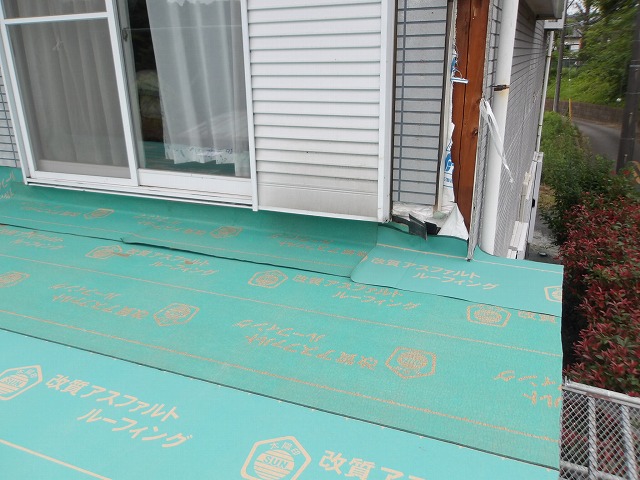 牛久市のK様のご依頼。玄関の屋根が経年劣化で痛んでいます。直したいので見て下さいとの事、直ぐにうかがいました。